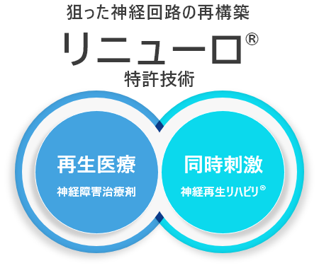 リニューロ®は、損傷した神経回路や失われた神経機能の回復・強化を促す特許技術を活用した神経障害治療です。