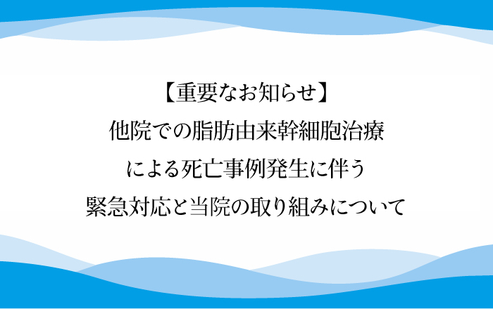 2025年8月29日、他院にて脂肪由来幹細胞治療により、患者様が急変・死亡するという痛ましい事例が報告されました。