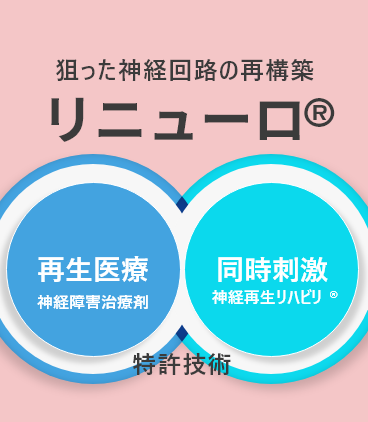 リニューロ®は、損傷した神経回路や失われた神経機能の回復・強化を促す特許技術を活用した神経障害治療です。